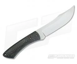 Handle:Â The full tang blade supports dark, stainless Damascus bolsters from Chad Nichols that are dovetailed to gorgeous carbon fiber scales. Both are attached with small Allen bolts that deliver a very clean look. A generous hole in the pommel is provided for lanyard attachment.
