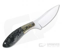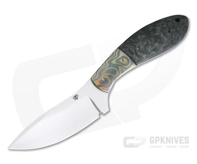 The Aaron Frederick Custom Fixed Blade Skinner is as functional as it is stylish and has a truly custom appeal for users and collectors alike. This piece has a hand rubbed satin finished, drop point blade of CPM-154, Chad Nichols Brass/Zirconium bolsters and Marbled Carbon Fiber handle scales.