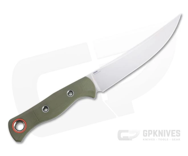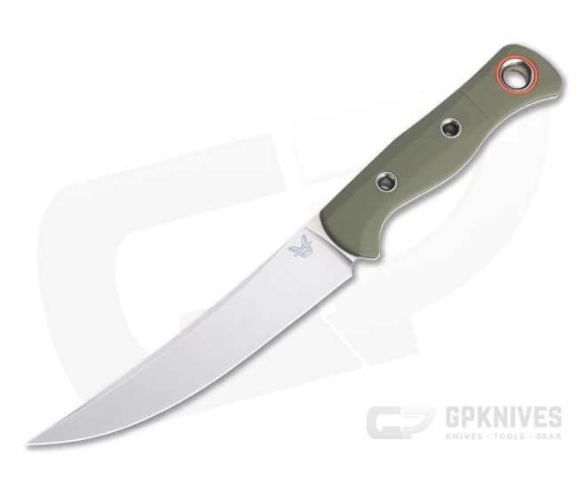 Part of the Hunt Line “Field To Table” series, the Benchmade Meatcrafter and is a purpose driven slicing knife that is at home skinning, boning, slicing and even filleting fish. If slicing is the task, then the tip-to-heel belly of the trailing point Meatcrafter will get the job done, especially with the razor sharp 14-degree SelectEdge. This version comes with a stonewashed CPM-S45VN blade and OD Green G10 handle scales.