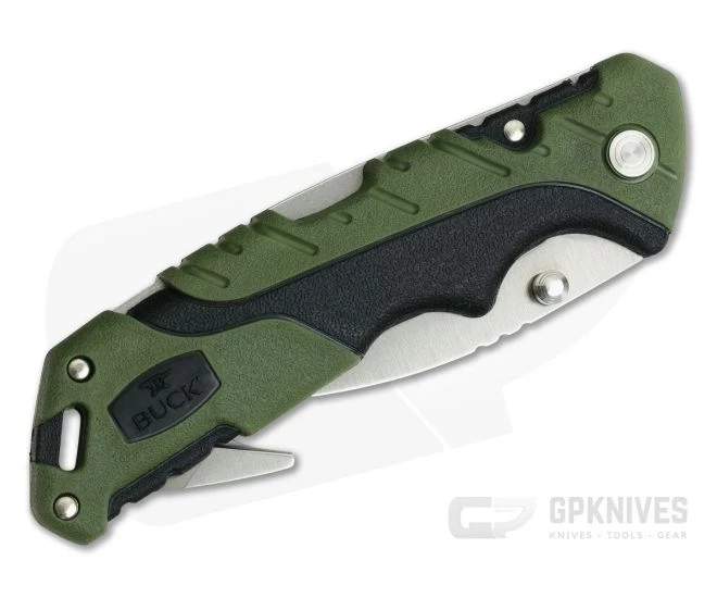 The Buck Folding Pursuit Large is a full-size, utilitarian drop point hunter with integral gut-hook designed as a multi-purpose alternative to traditional hunting knives. This mid-range series is perfect for new or seasoned hunters and outdoor enthusiasts. The 420HC stainless blade is tough, sharp and easy to maintain with optimal performance thanks to a world class Paul Bos Heat Treat. The handles are ergonomic and high traction Versaflex rubber over glass filled nylon with a simple yet robust back lock mechanism for security. The Pursuit series is sure to meet your needs without breaking the bank.