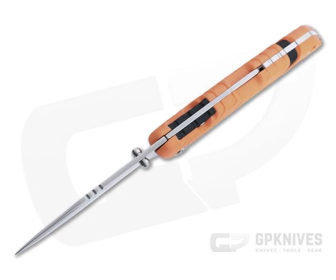 Handle:Â A high traction Versaflex rubber handle in hi-viz orange has an integrated index finger groove guarding the hand from slipping onto the blade. Well engineered texturing and jimping provides added security in the hand with an ergonomic design for a comfortable and secure grip until the job is done. A hole at the pommel end allows for lanyard attachment with a simple, timeless lock back construction for ease of operation and reliable security.