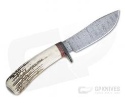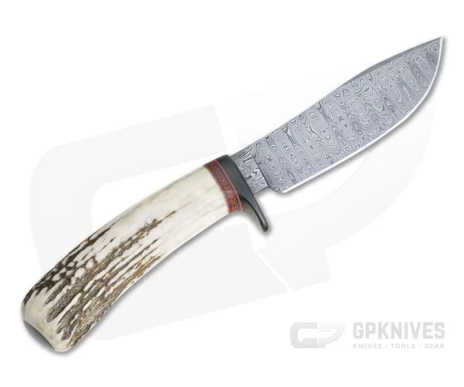 Blade:Â A custom take on a timeless classic, the Nessmuk profile blade has the traditional skinner profile with plenty of belly for slicing. A thicker stock and full flat grind make it a good all around users while the spine has a less pronounced hump and a forward swedge for better piercing performance. 1800 layer carbon steel Damascus offers a striking look while providing solid outdoor performance and ease of sharpening.