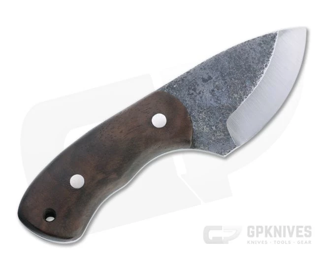 Handle:Â The handle comes with handsome tapered walnut scales for a solid three finger grip and a hole for lanyard attachment if additional real estate is needed. The scales are durable with a warm feel in hand and are securely attached with large stainless pins. A pinch grip with index finger on the spine allows for optimal control in skinning and fine cutting tasks.