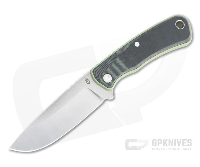 The venerable drop point is a classic and utilitarian profile that has withstood the test of time. The Downwind Drop Point from Gerber takes this iconic hunting knife profile and delivers it with modern materials and style. This version comes with a two-tone 7Cr17MoV stainless steel blade with Sage Green GFN and layered green and black G10 handle scales.