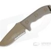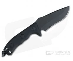 Blade:Â A beefy +5mm thick blade is made from high performance Bohler Elmax stainless steel, executed in a saber grind with a partially serrated recurve blade and finished with a durable, non-reflective poly-ceramic Cerakote coating. The blade comes razor sharp for good slicing and nearly full length top swedge for enhanced piercing while the partially serrated section makes short work of fibrous materials. While this is a more tactically orientated blade the big belly lends this knife to hunting and skinning tasks as well.