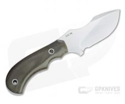 The Mike Irie Custom Model 114 is a tactical hunting and skinning knife built with versatility in mind. A broad hollow ground blade slices and pierces with ease while retaining good durability, and a stout Micarta handle delivers a secure grip and solid ergonomics in classic Irie style. Mike Irie is renowned for his hand ground blades and exceptional fit and finish, and this Custom 114 is no exception. This version comes with a hand rubbed satin CPM-S35VN stainless steel blade and green canvas Micarta handle scales.