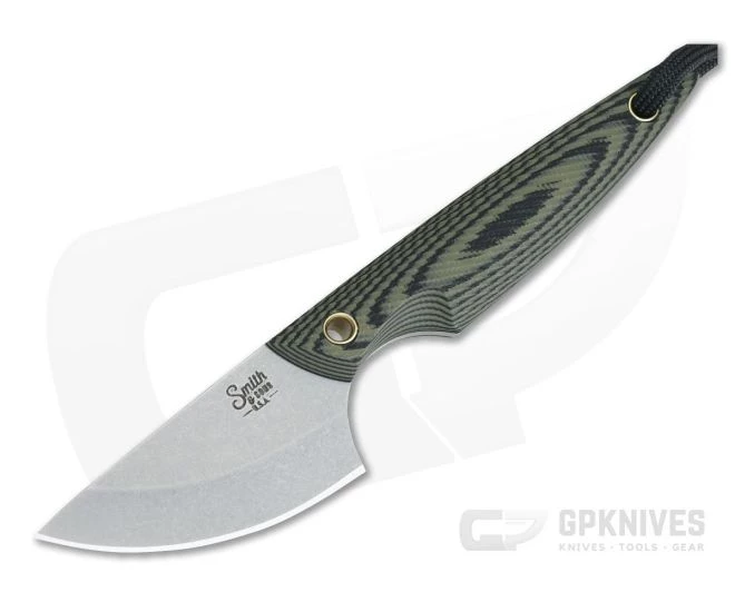 The Smith & Sons Shrew is a fully functional, every day carry fixed blade designed for neck carry. The slender handle design makes for low-profile carry while still providing a full, four-finger grip. A compact blade of AEB-L offers a full belly, hollow ground cutting edge and fine point ideal for everyday use. At 3.5 oz (132.3 g) for the whole package you’ll forget you’ve got it until you need it. This version comes with a tumbled blade finish and Camo layered G10 handle scales.