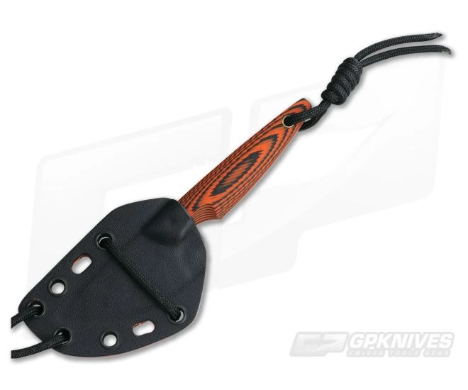 The Sheath: Includes a Black and Orange Kydex sheath with paracord lanyard set up for neck carry.