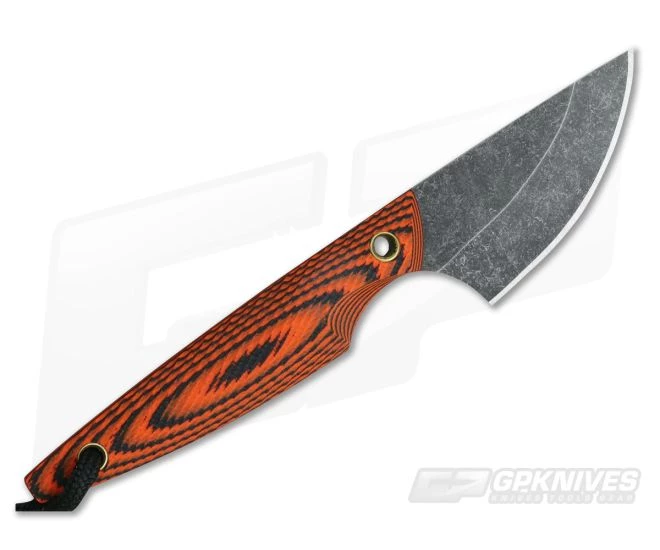 The Blade:Â A thin, straight spine, full tang 1095 Tool Steel construction makes the Shrew plenty robust while the hollow grind delivers excellent slicing and a fine point for piercing and detail work. The blade sports a Darkened, acid washed and tumbled finish that hides wear well and adds a touch of corrosion resistance. 1095 is a carbon steel and will rust without proper maintenance.