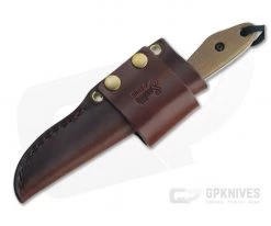 Sheath: Carries via a click-in leather sheath with vertical/horizontal belt loop. Mini Tek-Lok compatible.