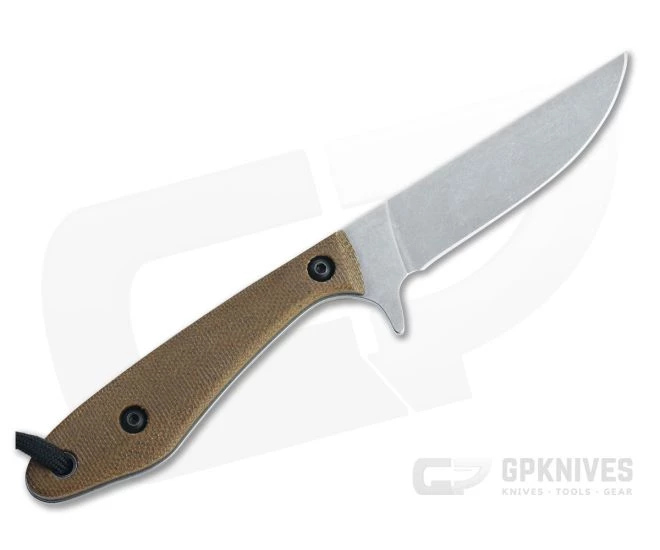 Handle: Natural canvas Micarta scales are supported by the full tang construction. Paired with the pommel swell design, the scales give this small knife a big feel that is comfortable enough for serious, extended use. Micarta is a rugged, durable and high traction material, even when wet. Black hardware holds the scales securely, and a hole at the pommel end has an attached lanyard for easy draw from the sheath.