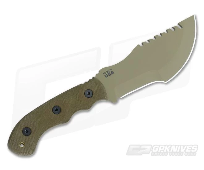 The Blade:Â Meant to be multi-purpose with its large bellied drop-styled front end and straight edge cutter nearest the handle. The front half is an excellent slicer, perfect for skinning and comes to a sharp point for penetration cuts. This size Tracker gives the user around 4.75 inches of hollow ground cutting edge to work with. The nearest part is great for overall utility/every day carry purposes and chores around camp. Light jimping nearest the handle provides the first, and grippiest, area to rest the thumb while just in front of the that is a perfect-sized thumb scoop cutout. This spot in smooth and purposeful to choke up on detailed tasks. The front half to the tip is used for a toothy sawback which will come in handy in a number of pulling or tearing scenarios. Nearly every inch of the Tracker blade was put to use to give the user as many options with their tool as possible.