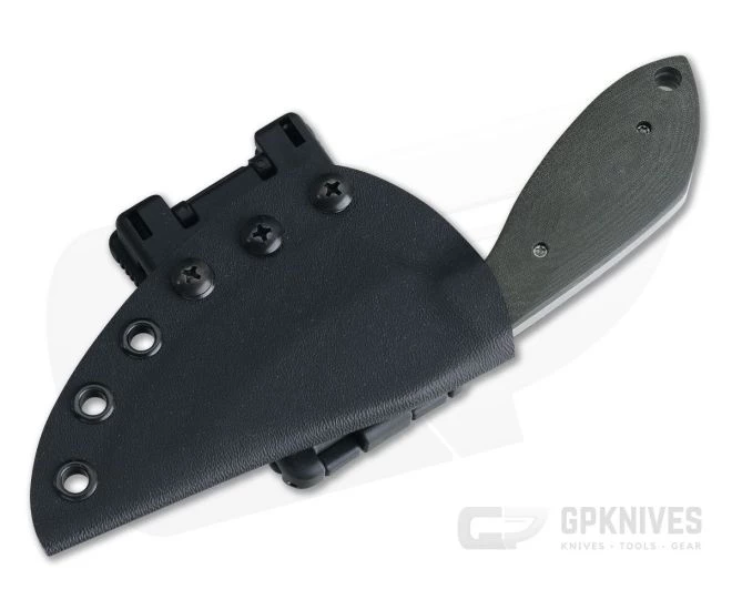 Handle:Â The full tang blade supports a generous, hand-filling handle of blasted and contoured Green Linen Micarta. The handle cants down from the blade which forms an integral guard providing protection against the fingers sliding onto the blade. The pistol-like grip allows for a close and secure grip for all manner of tasks. A large hole is provided for lanyard attachment.